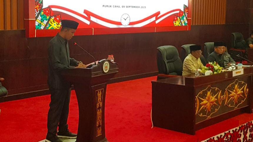 Puruk Cahu – DPRD Kabupaten Murung Raya kembali menggelar Rapat Paripurna dengan agenda penyampaian pemandangan umum fraksi-fraksi terhadap dua Rancangan Peraturan Daerah (Raperda). Yaitu, Raperda tentang Pertanggungjawaban Pelaksanaan APBD Tahun Anggaran 2024 dan Raperda tentang Perubahan APBD Tahun Anggaran 2025, Selasa (9/9/2025).