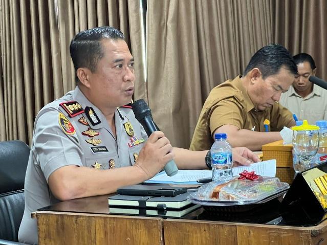 Kapolres AKBP Eddy Santoso menyampaikan ucapan terima kasih atas kehadiran seluruh peserta rakor. Ia menegaskan pentingnya sinergi lintas sektoral dalam menyukseskan Operasi Lilin Telabang 2025 sebagai operasi kemanusiaan yang mengedepankan pelayanan, perlindungan, dan rasa aman bagi masyarakat.