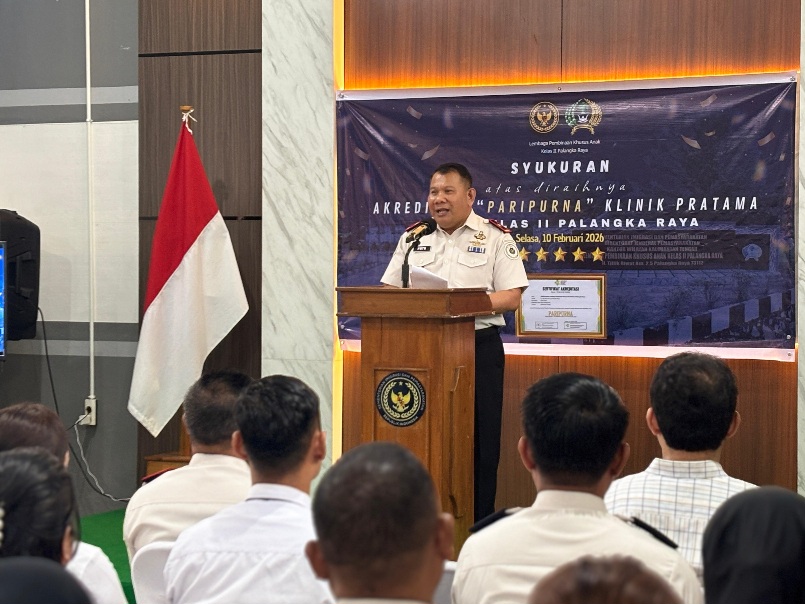 PALANGKA RAYA – Klinik Pratama Lembaga Pembinaan Khusus Anak (LPKA) Kelas II Palangka Raya berhasil meraih akreditasi paripurna. Capaian tersebut disyukuri melalui kegiatan syukuran yang digelar di Aula LPKA Kelas II Palangka Raya, Selasa (10/2/2026).