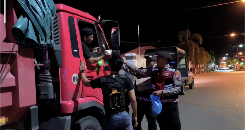 Dalam kegiatan tersebut, petugas membagikan nasi bungkus kepada para pengemudi yang tengah beristirahat menjelang sahur. Selain itu, polisi juga memberikan imbauan kepada para sopir agar selalu mengutamakan keselamatan berlalu lintas serta menjaga ketertiban umum.