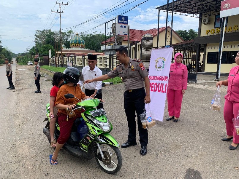 Sebanyak 100 paket takjil dibagikan kepada para pengguna jalan yang sedang dalam perjalanan menjelang waktu berbuka puasa. Aksi sosial ini dihadiri oleh Wakapolres Barito Timur, beserta jajaran Satresnarkoba, personel Bag Logistik, anggota Siekum Polres Barito Timur, serta ibu-ibu Bhayangkari Cabang Polres Barito Timur.