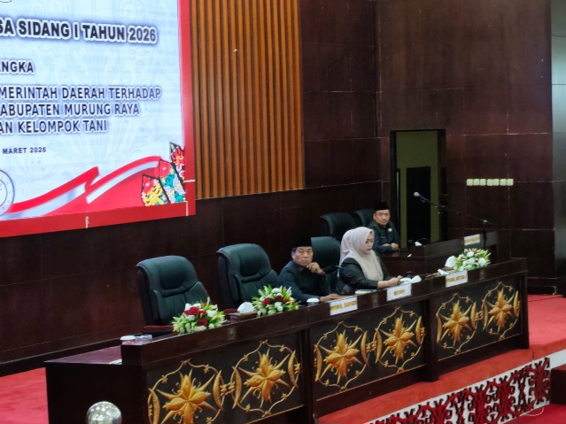 PURUK CAHU – Dewan Perwakilan Rakyat Daerah (DPRD) Kabupaten Murung Raya (Mura) menggelar Rapat Paripurna ke-3 Masa Sidang I Tahun 2026 dalam rangka mendengarkan pandangan pemerintah daerah terhadap Rancangan Peraturan Daerah (Ranperda) inisiatif DPRD tentang pengelolaan kelompok tani, Senin (9/3/2026).