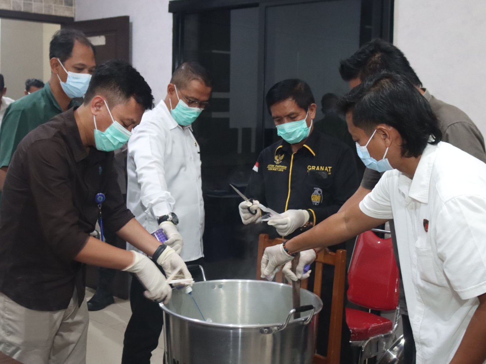 Proses pemusnahan dilakukan sesuai prosedur dengan melarutkan sabu ke dalam air panas yang dicampur cairan pelarut hingga seluruhnya hancur.